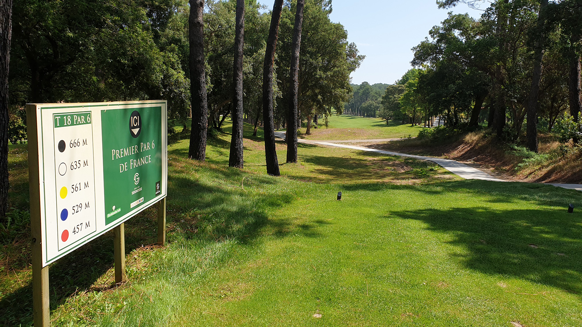 Golf de SEIGNOSSE à un cadre extraordinaire Un parcours difficile certes , entouré d’arbres magnifiques , vallonné, j’adore jouer soit à partir du 10 ou bien du 1 . Les chemins goudronnés doivent être réparés ,ils sont très abîmés . Pour moi c est le golf de Seignosse le plus beau de la région Aquitaine . Je souhaite à ce golf un avenir et un succès grandissant . Cordialement RR