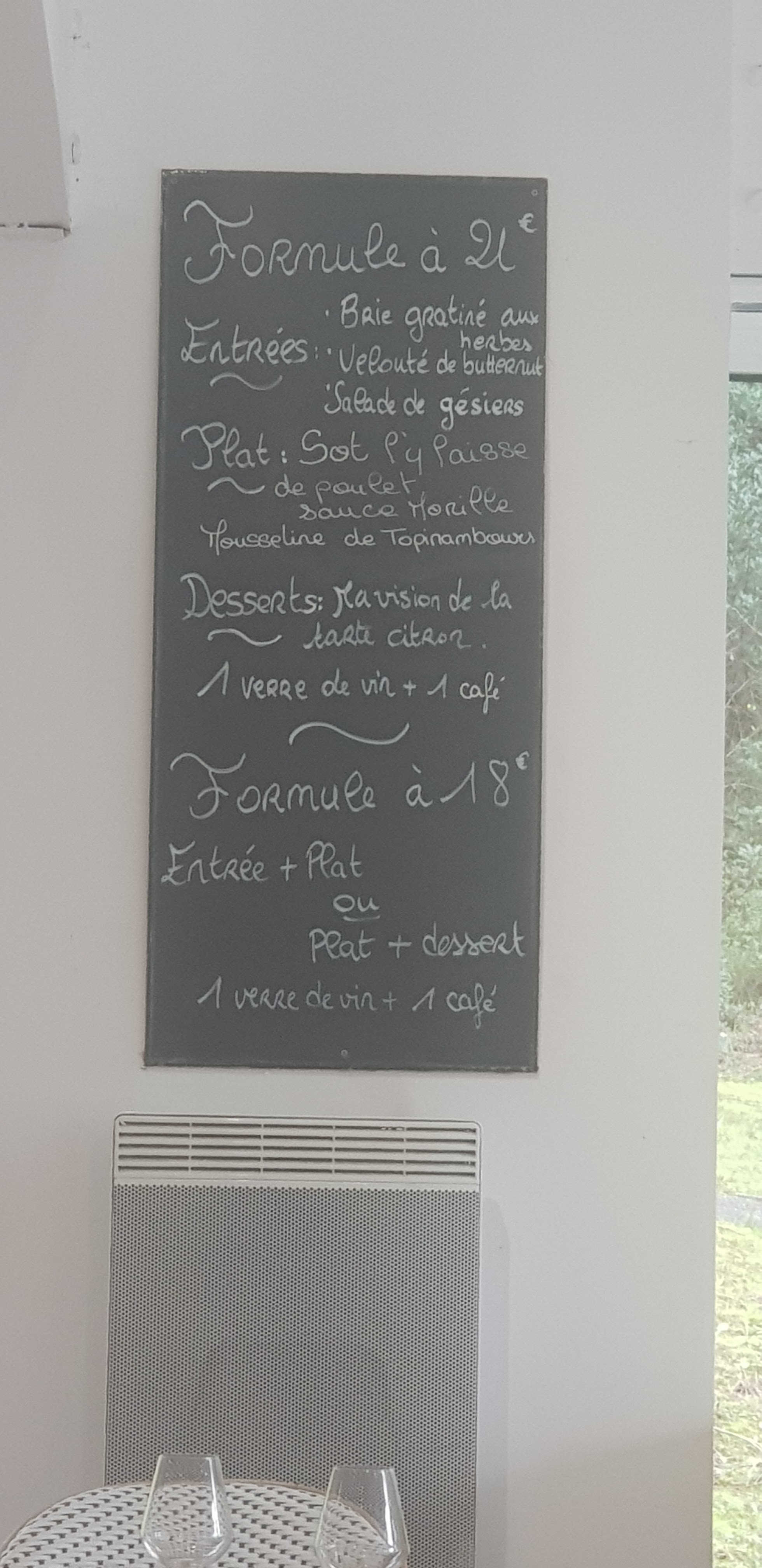 Très bel endroit Nous avons passé un très bon moment, serveuse souriante agréable et au petit soin Merci au chef pour la petite attention (je n aimais pas les entrées prévues au menu, il m a adapté une entrée selon mes goûts) Très bon repas avec des produits frais et de qualité Le dessert était a tomber