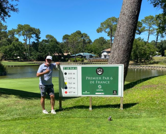 Superbe. Amateurs de beaux golfs, posez votre sac au golf de Seignosse. Avec mon index (22), je pouvais faire Hossegor mais j’ai préféré Seignosse car je souhaitai un esprit plus simple et c’est bien ce que j’ai trouvé. Un accueil agréable, des conseils utiles pour le parcours, un maréchal au départ dont les bâtons sont remplacés par le sourire et des partenaires de jeu très sympas. A 8h40 le départ est donné pour presque 5 heures de jeu sur un parcours qui se révèle assez vallonné, dans une forêt de pins superbes qui nous protège souvent du soleil et nous fait perdre parfois des balles tellement certains fairways très souples sont étroits. Si vous le pouvez, évitez finalement la voiturette sur ce parcours, au mieux un chariot électrique pour ne pas s’isoler des autres joueurs. En plus elle ne vous emmène pas partout car vous êtes surveillé par son GPS pour éviter de vous retrouver sur une aire de départ ou le green. Il faut maitriser votre driver si vous le sortez sinon, bois de parcours et longs fers sont suffisants si vous êtes longs sauf… sur le 18 qu’il faut mériter. Le premier par 6 de France avec ses 666 mètres des boules noires. C’est long, très long mais, il ne présente presque pas de difficultés. Un parcours de grande qualité, bien entretenu, voire trop bien car vous pouvez y croiser les jardiniers arrosant les greens avec leur engrais bleu qui finit par se poser sur la balle ? Pensez alors à la nettoyer et vos mains aussi ! Seule petit ombre à notre parcours car il est tellement beau, agréable et technique en même temps qu’on ne garde en tête que nos plus beaux coups. Faites vous plaisir avec un Chose en fin de parcours face à l’immense trou 18. Admirez le vélo TITLEIST au Proshop !!