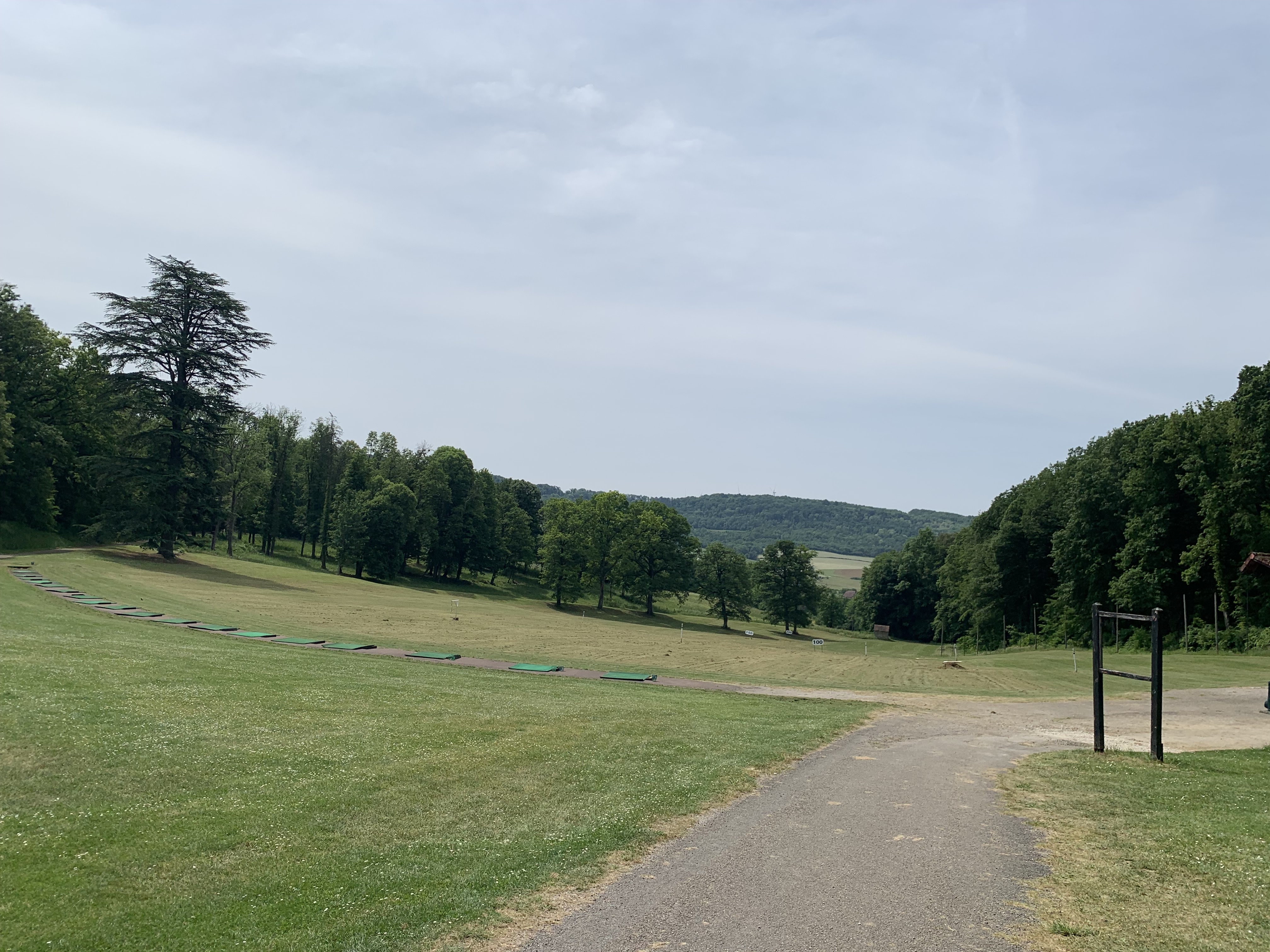 Très bel endroit pour jouer détendu. Vous pouvez réserver le green fee via UGolf, mais vous pouvez également payer sur place au pro shop. J'y étais pendant les vacances de la Pentecôte à midi, il ne se passait pas grand-chose. Les fairways étaient un peu secs, mais les greens étaient en bon état. 18 trous coûtent 50 €, ce qui me semble plus que correct pour ce parcours. La place mène magnifiquement autour du château central. Ce qu'il faut savoir au préalable c'est que c'est un endroit très vallonné et qui nécessite du gras dans les jambes ou 4 roues électriques.