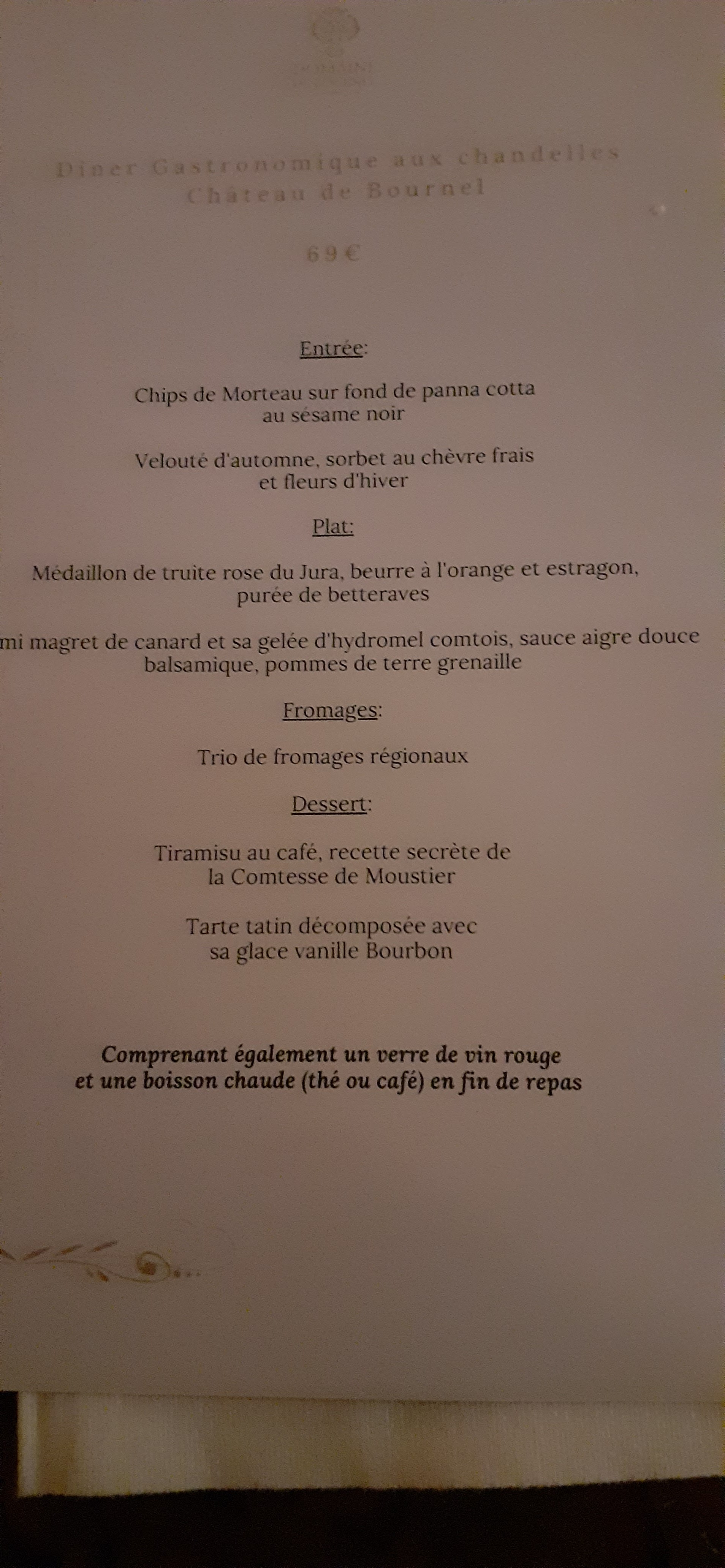 Ce lieu est plein de charme. Une excellente nuit au sein du château, un réveil plus qu'agréable avec une petite promenade dans le parc. L'hôtel est dans son jus mais pour le prix les prestations sont excellentes !